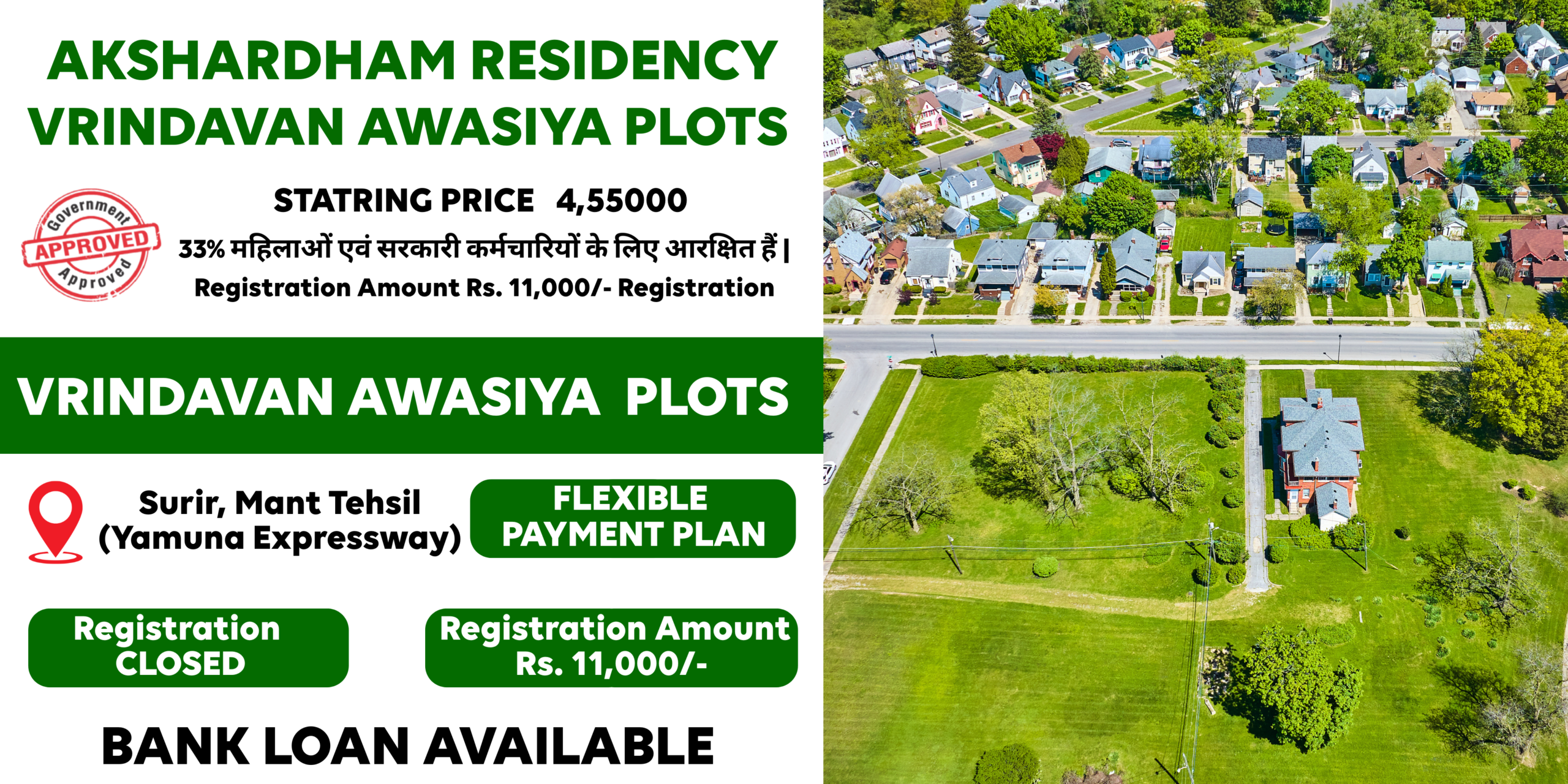 Akshardham Residency offers residential plots along the rapidly developing Yamuna Expressway corridor—a strategic location bridging Noida, Greater Noida, and the NCR’s expanding real estate belt. Our plots cater to buyers looking for affordable land with expressway connectivity, offering an excellent opportunity to build custom homes or invest for the future. With flexible plot sizes and a growing infrastructure, Akshardham Residency promises the perfect blend of suburban calm and urban accessibility. We encourage every buyer to verify legal clearance and infrastructural readiness before purchase, ensuring transparency and a secure